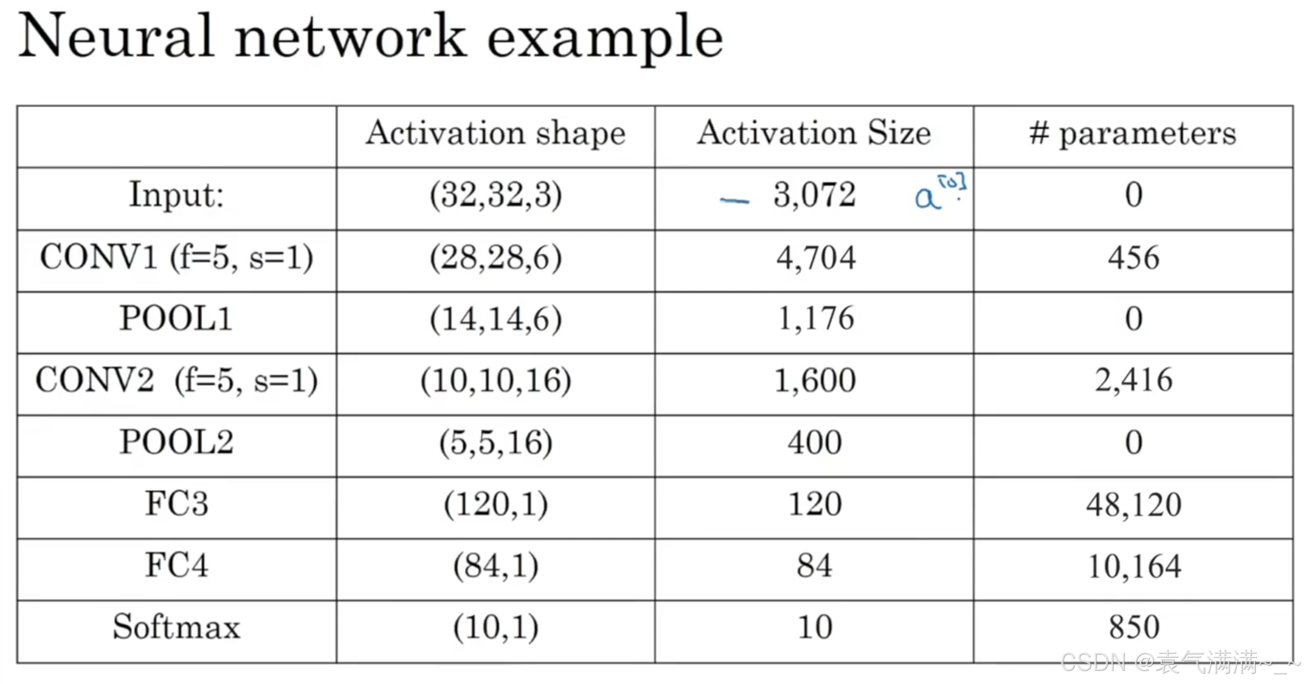 为输出通道数。eg:CONV1(5×5×3×6+6=456)