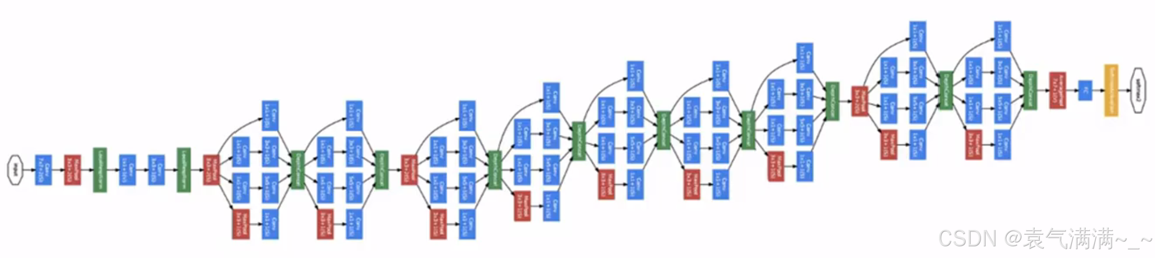 多个 Inception模块组成一个完整的 Inception网络。