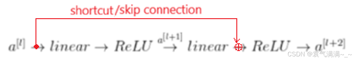,我们称其为捷径或跳跃连接。