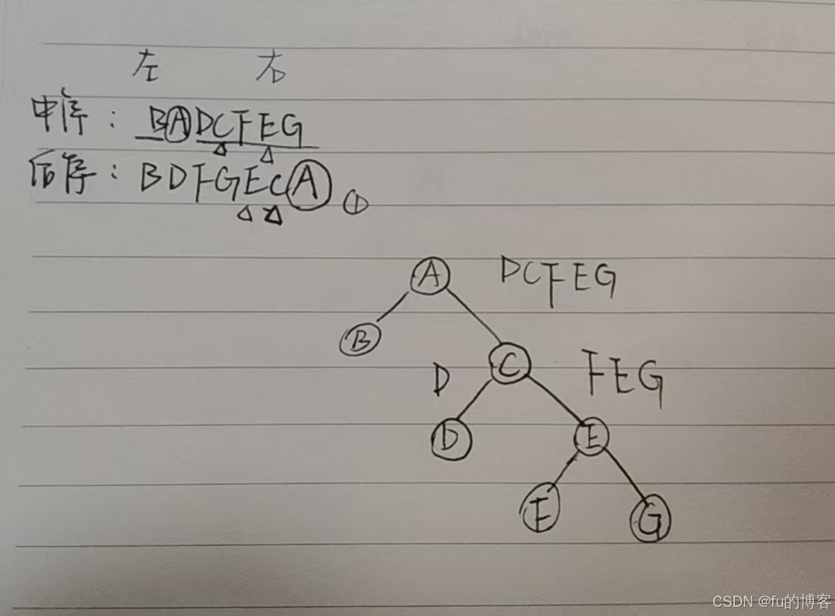 记住根节点都是从前后序里找、找到根节点后分区,再继续找下一个根节点