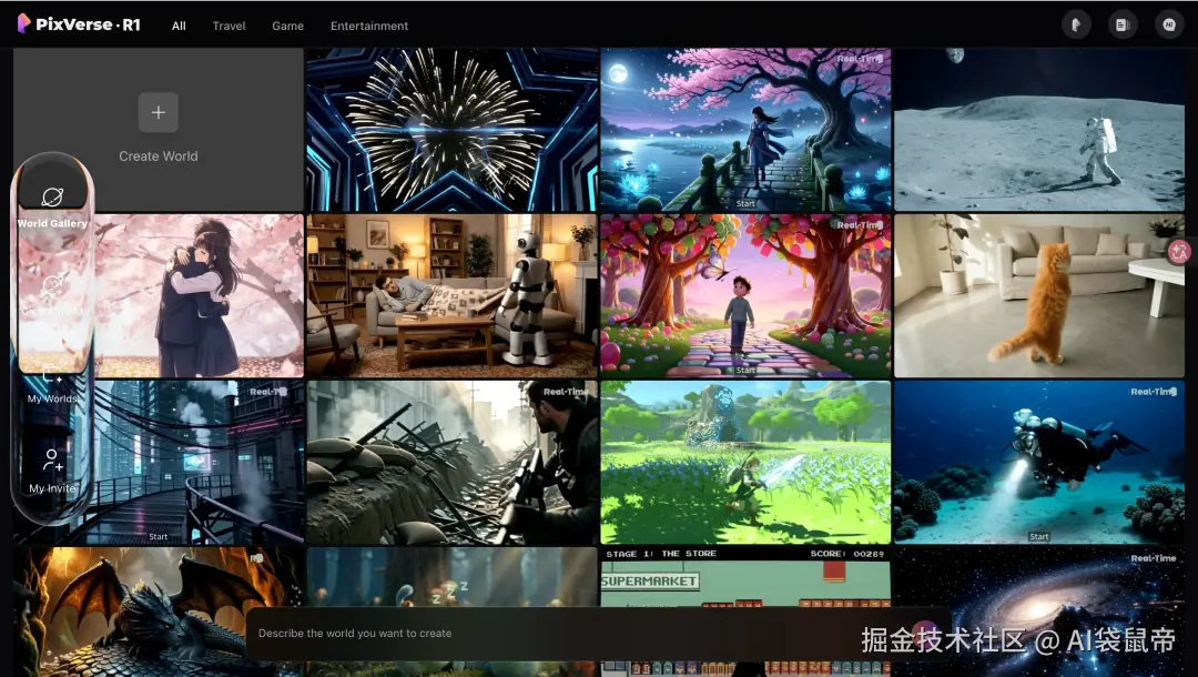 这就是 PixVerse 最新发布的 R1 实时世界模型,的交互效果。