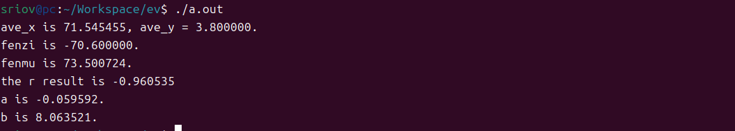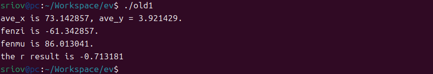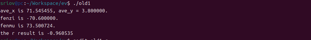 printf("the r result is %f\n", fenzi / (fenmu1 * fenmu2));
