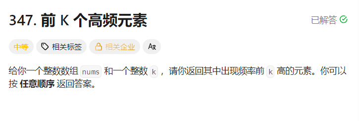 给你一个整数数组 nums 和一个整数 k ,请你返回其中出现频率前 k 高的元素。你可以按 任意顺序 返回答案。