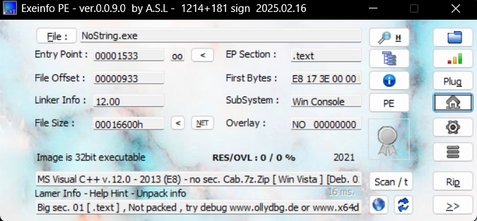 先将其拖进 exeinfo 看看是什么成分,确定是32位的