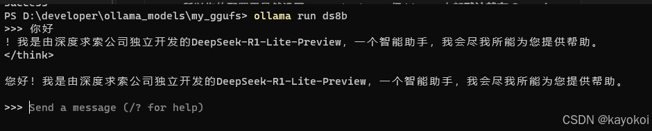 创建完成后运行ollama run 模型名
