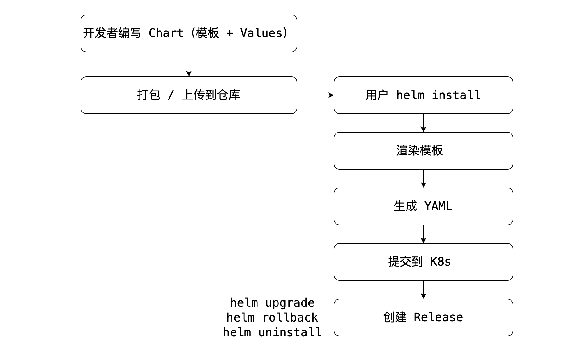 每个 Release 有独立版本、配置与生命周期(安装 / 升级 / 回滚 / 卸载)。