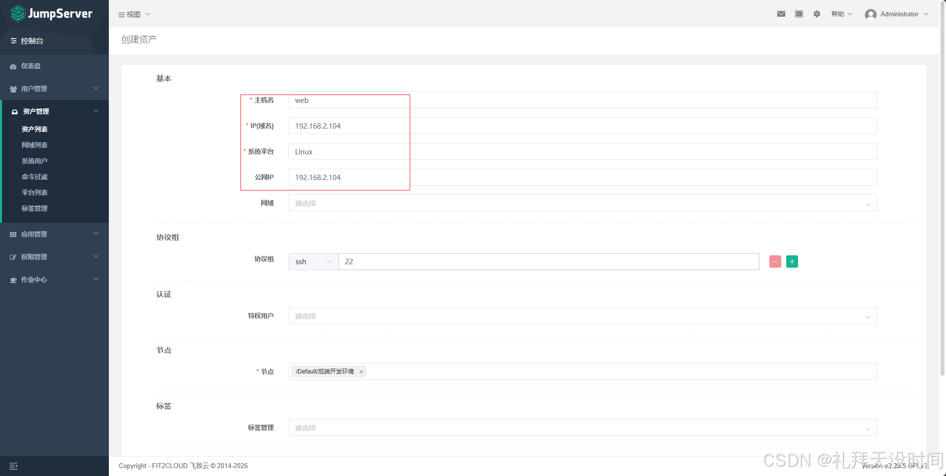 | 系统用户 | 资产上的真实账号(如 root、deploy、app)。注意:不是JumpServer登录用户! |