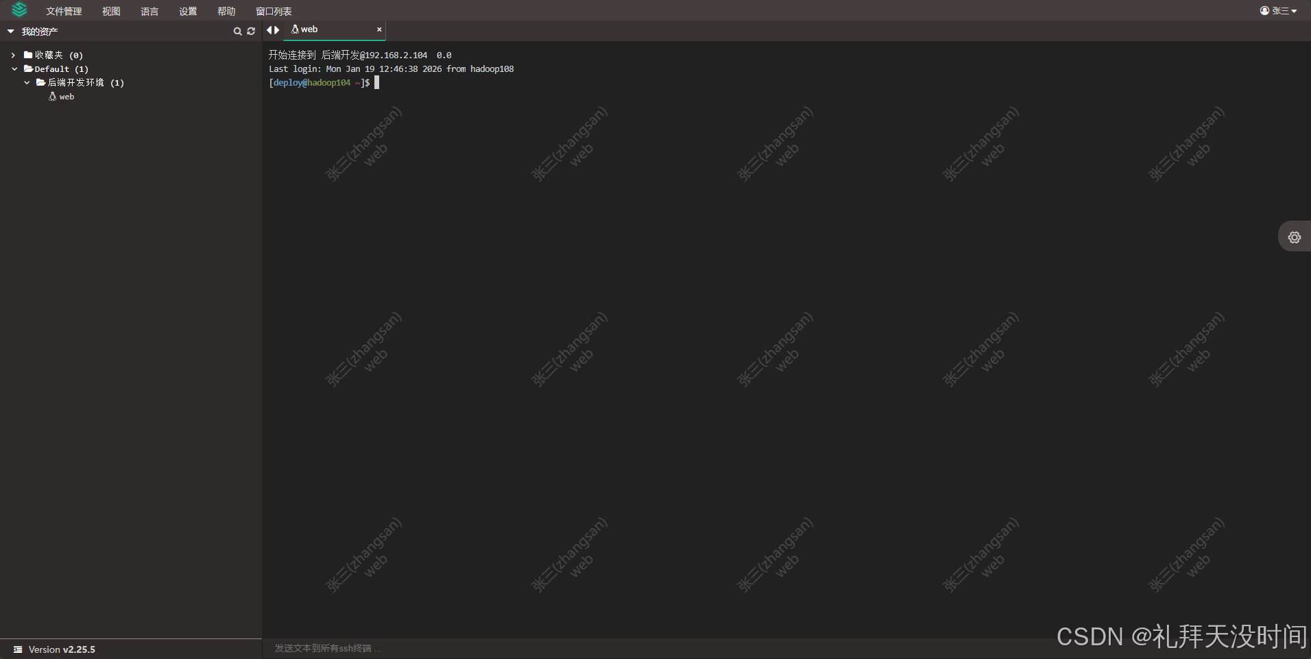 点击"Web CLI"即可在线终端,自动以 deploy 用户登录服务器,全程无需知道服务器密码。