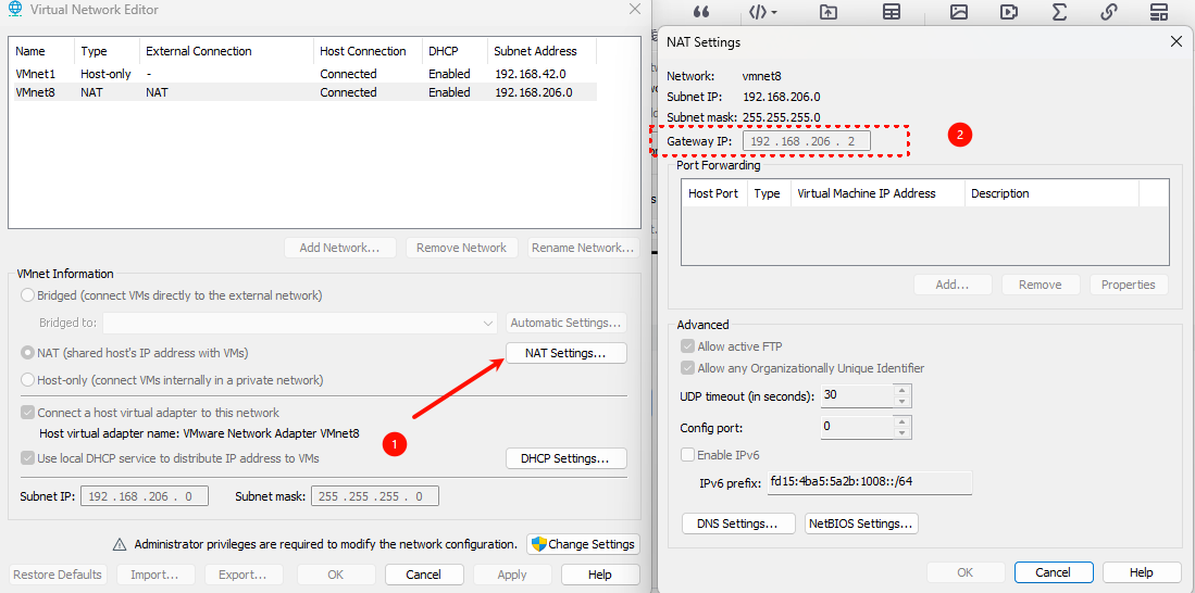我安装了一台Ubuntu Server做实验,在配置网卡IP的时候我想配置静态IP(192.168.206.99),并且想设置成192.168.206.0这一网段的,采用的nat上网的方式。于是我把Windows主机的VMware Network Adapter VMnet8的IP从自动获取改成了手动静态IP(192.168.206.1).