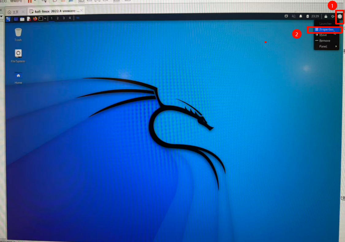 其次,桌面最上一栏出现小齿轮,右键点击后,点击"Properties"
