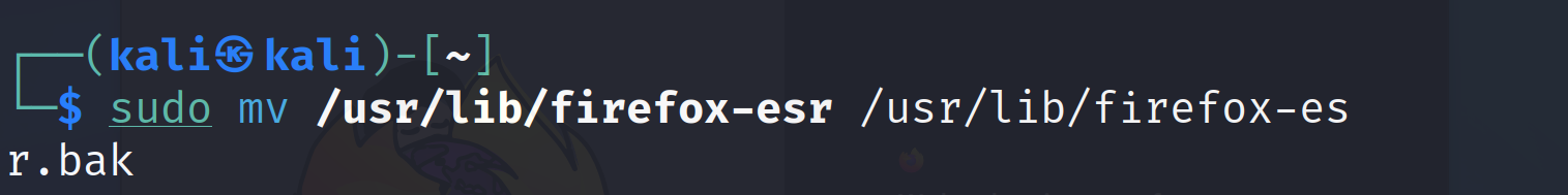 Step2。尝试移除当前的firefox。提示"The following packages have unmet dependencies",说明当前系统中安装的firefox与kali中的一些软件存在依赖关系,于是决定不删除了,将其备份。