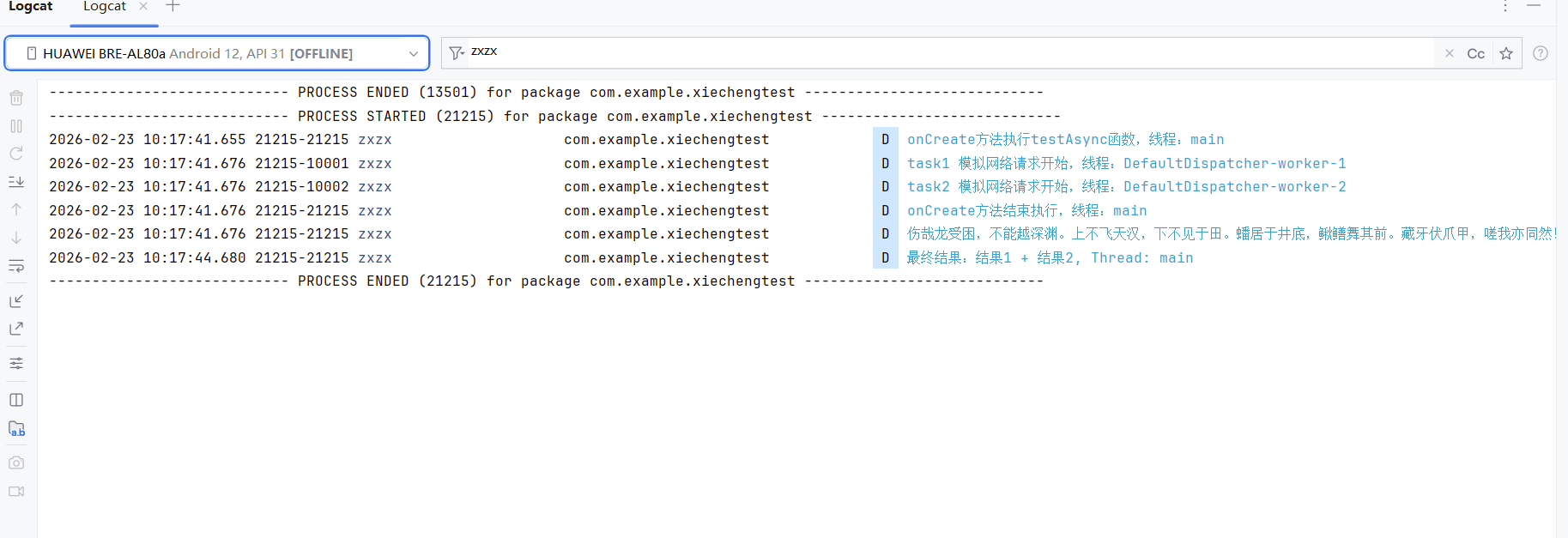 Log.d("zxzx", "最终结果:$result1 + $result2, Thread: ${Thread.currentThread().name}")