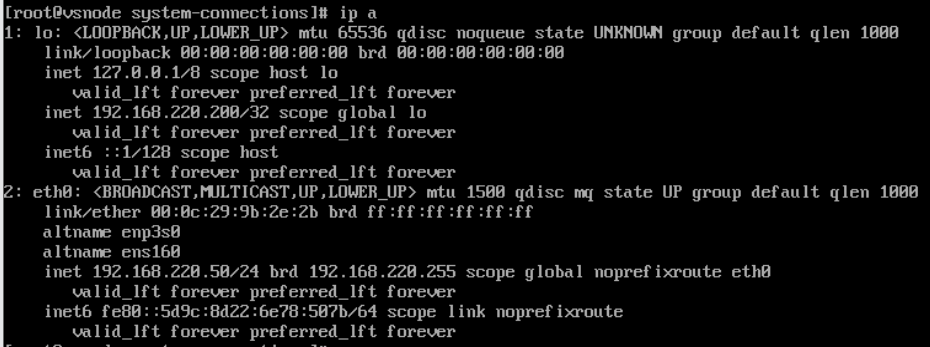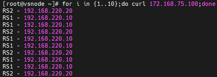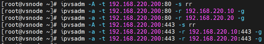 | vsnode | 调度器 | eth0:192.168.220.50(dip) | 真正的 LVS 调度器。通过此 IP 与内网的 RS1、RS2 通信,接收来自router 的请求并根据算法调度给后端 RS。 |