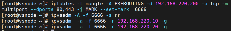 解决方案(使用火墙标记访问 vip 的80和443的所有数据包,设定标记为6666,然后对此标记进行负载):