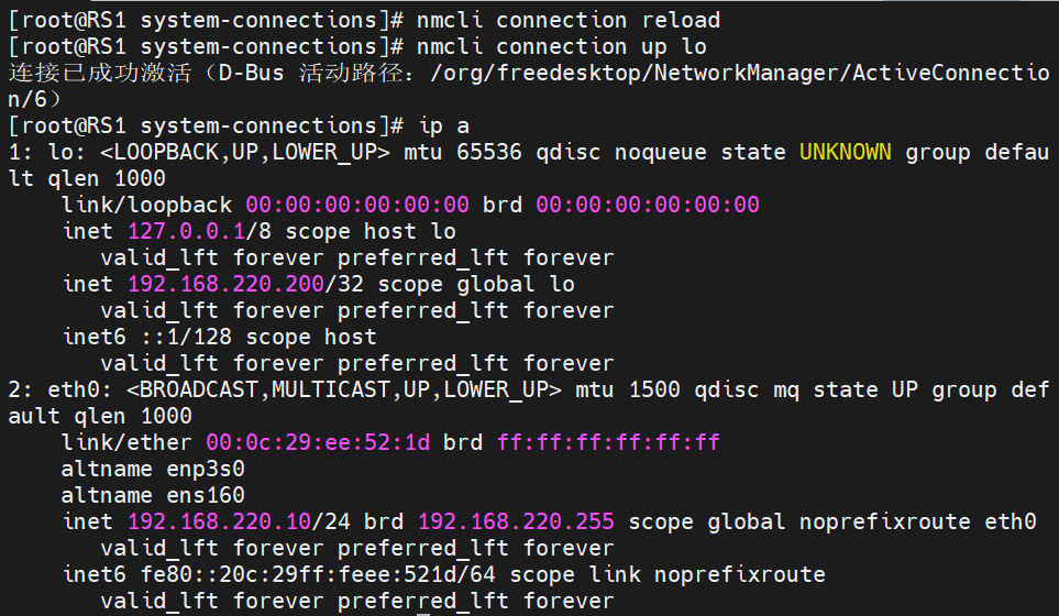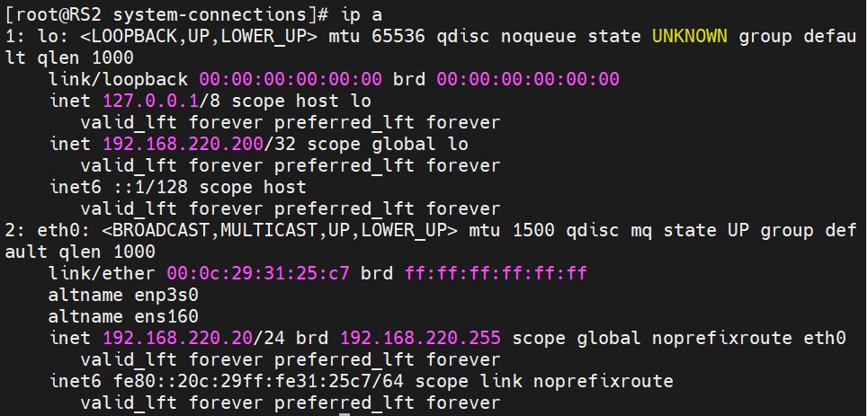 | RS1 | 服务器 | eth0:192.168.220.10(rip) | 处理实际业务的服务器1。必须配置VIP(通常配置在 lo 回环接口上,此处未显示配置命令,但 DR 模式要求 RS 有 VIP),直接响应客户端。 |