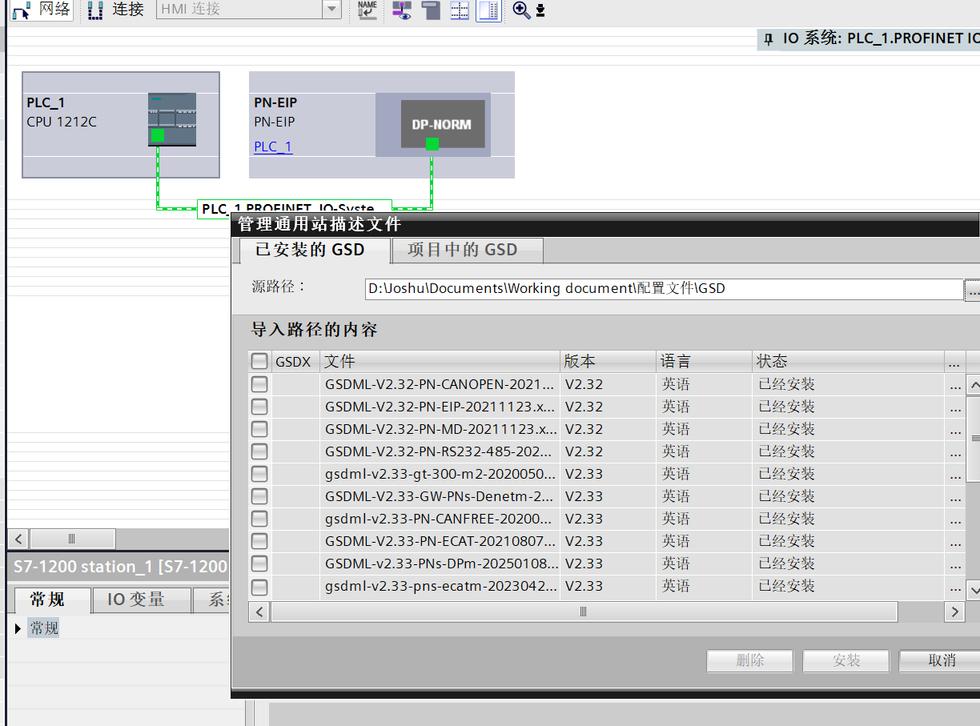 安装PROFINET转EtherNetIP网关的GSDML文件(TIAPortal>选项>GSD管理);