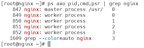 验证 Nginx 的 worker 进程是否按照预期被绑定到了对应的 CPU 核心上
