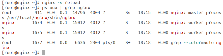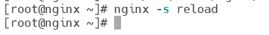 nginx -s reload:向 Nginx 主进程(master process)发送重载信号,使其重新加载配置文件。