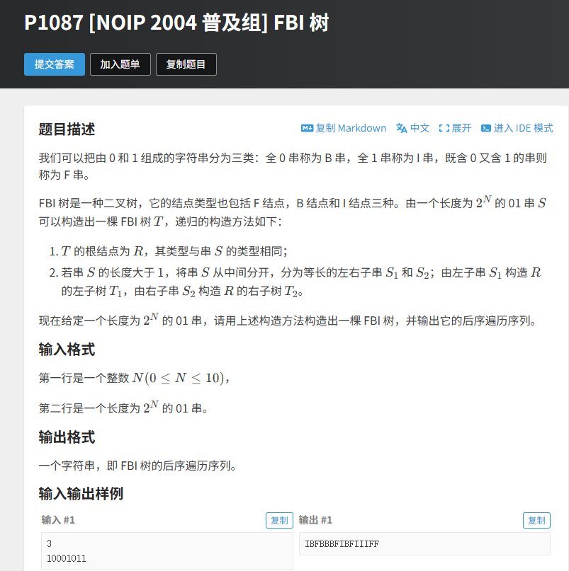 进行后序遍历后发现我们得到的输出与题目所给一致,那么我们只需用二叉树模拟题目过程即可,