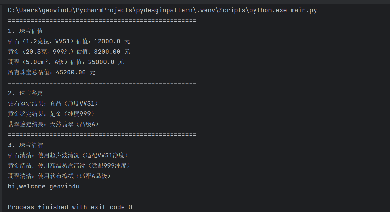 print(f"翡翠清洁:使用软布擦拭(适配{jade.grade}品级)")