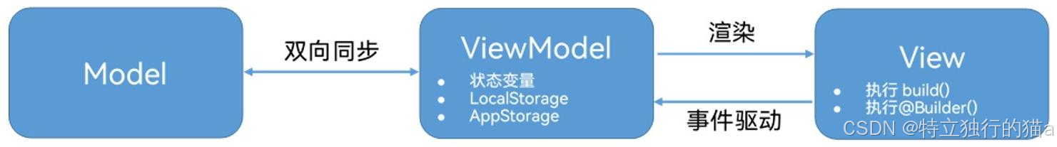 在鸿蒙原生应用开发中,ArkUI采取MVVM=Model+View+ViewModel模式,其中状态管理模块起到的就是ViewModel的作用,将数据与视图绑定在一起,更新数据的时候直接更新视图。ArkUI中,model为我们定义的数据结构和数据来源,通过ArkUI提供的装饰器@State等装饰对应的数据,就提供了响应式能力,model数据的变化能够触发UI的更新。