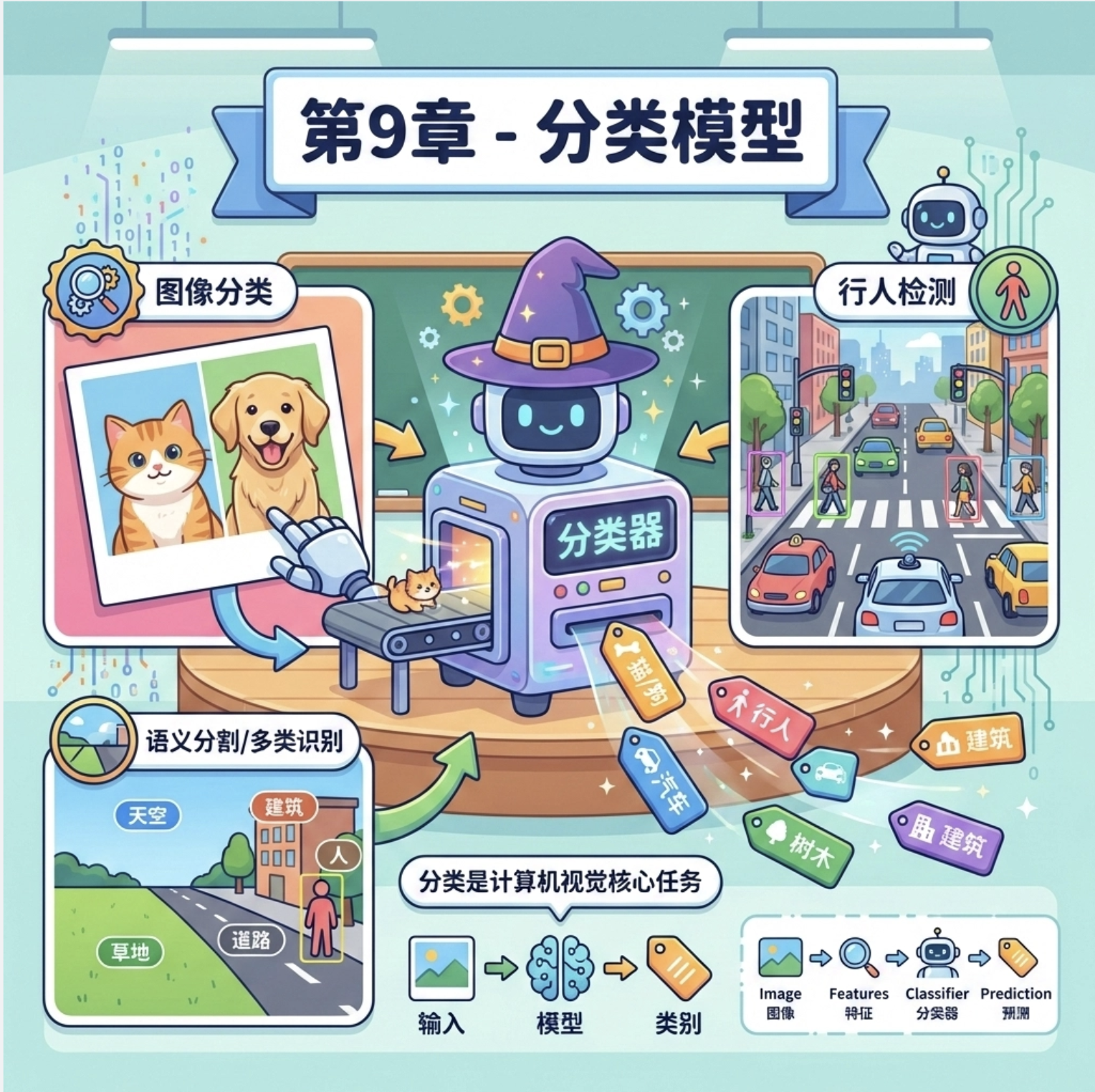 大家好!今天我们来深度拆解《计算机视觉:模型、学习和推理》这本经典著作的第 9 章 ------ 分类模型。分类是计算机视觉的核心任务之一,小到识别照片里的猫狗,大到自动驾驶中的行人检测,背后都离不开分类模型的支撑。