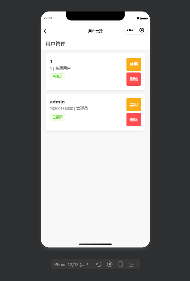 `POST /api/admin/user/toggle` - 禁用/启用用户