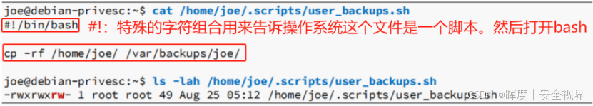 user_backups.sh位于/home/joe/下,每分钟 被执行一次,且执行者是 root。