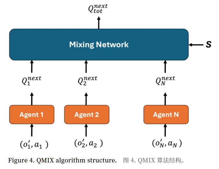 QMIX是一种深度多智能体强化学习(MARL)技术,旨在在一个集中式训练框架内学习分散的策略,有效地利用额外的状态信息[68].