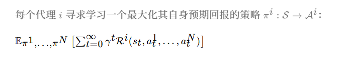 G = ( S , { A i } i = 1 N ) , P , { R i } i = 1 , N , γ ) \mathcal{G=(S,\{ A^i\}{i=1}^N) ,P,\{ R^i \}{i=1},^N ,\gamma )} G=(S,{Ai}i=1N),P,{Ri}i=1,N,γ)
