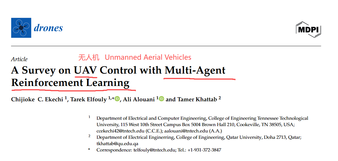 文章:A Survey on UAV Control with Multi-Agent Reinforcement Learning