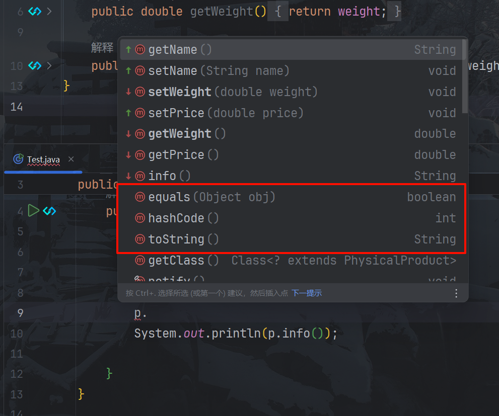 调用时会发现有这些方法并不是我们定义的,这些是jdk中自带的,当一个类没有继承任何类的时候会默认继承Object类