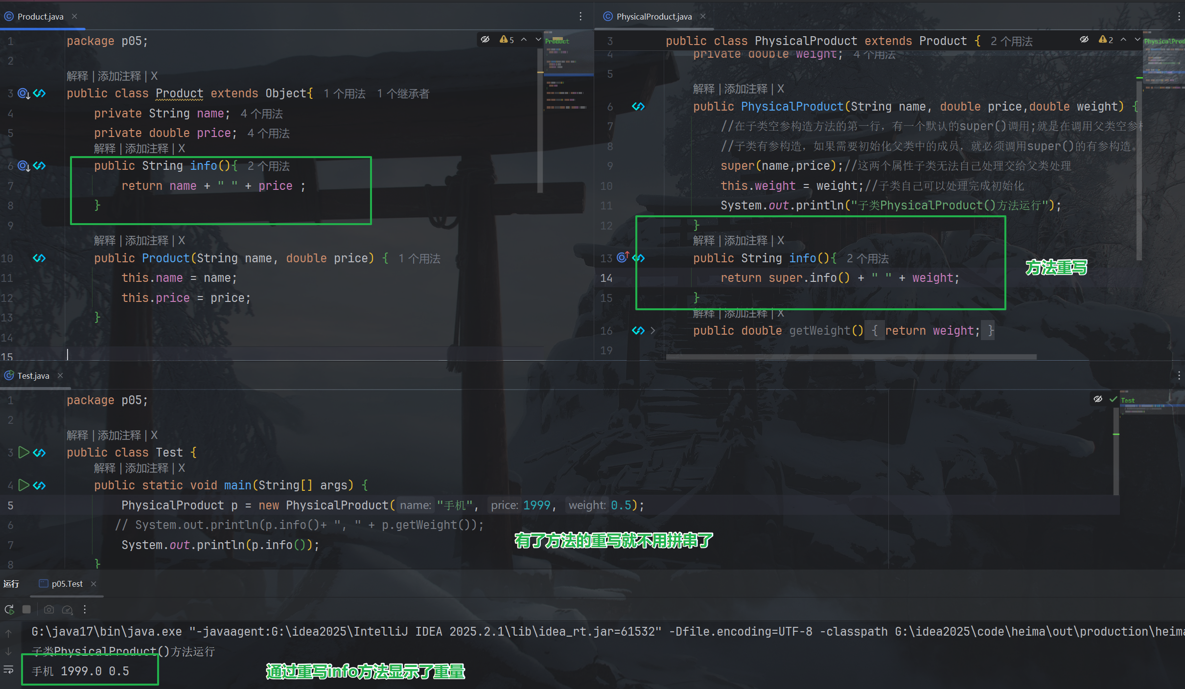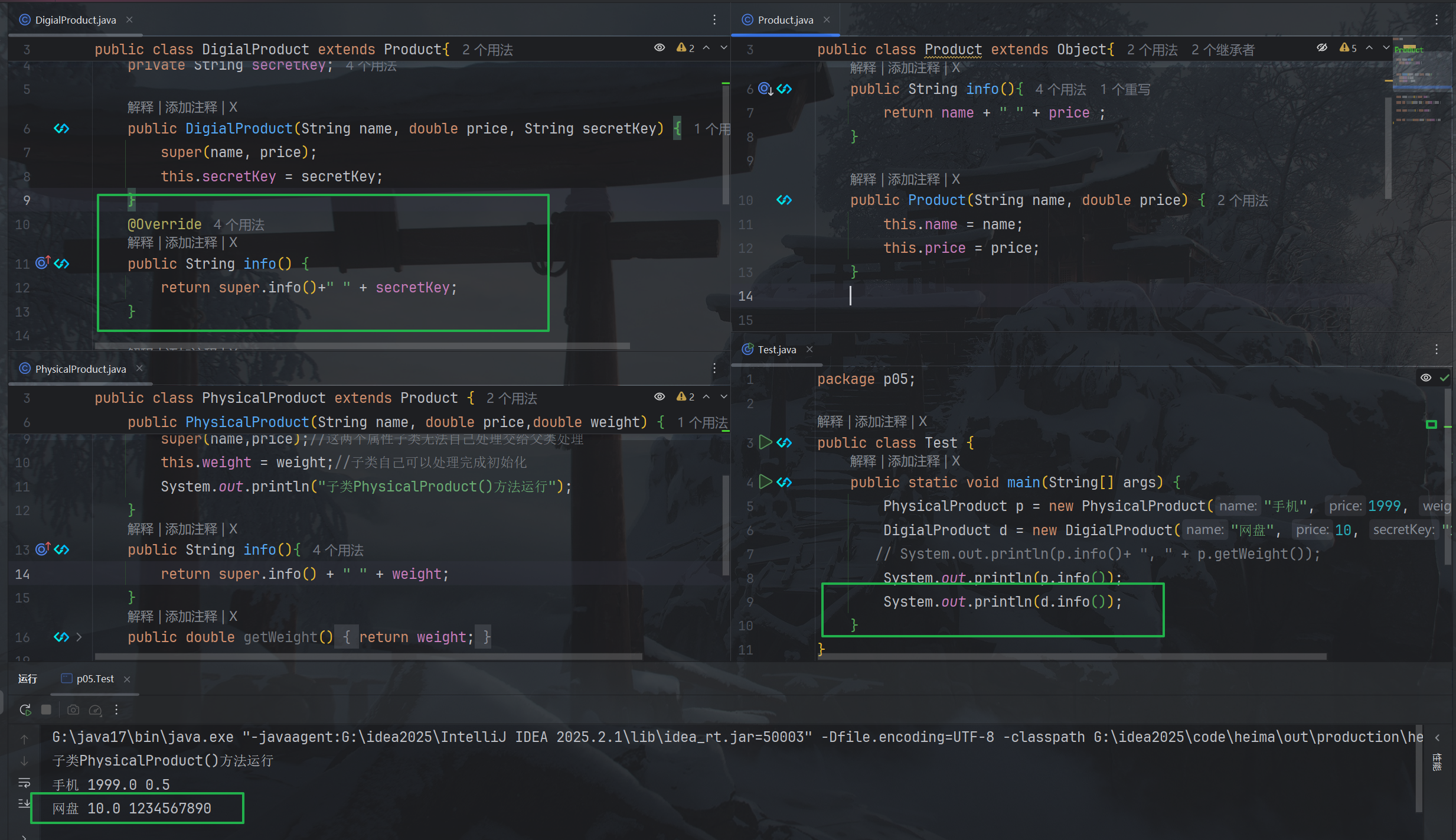 创建一个商品类为父类,再创建一个类为实体商品类继承。
