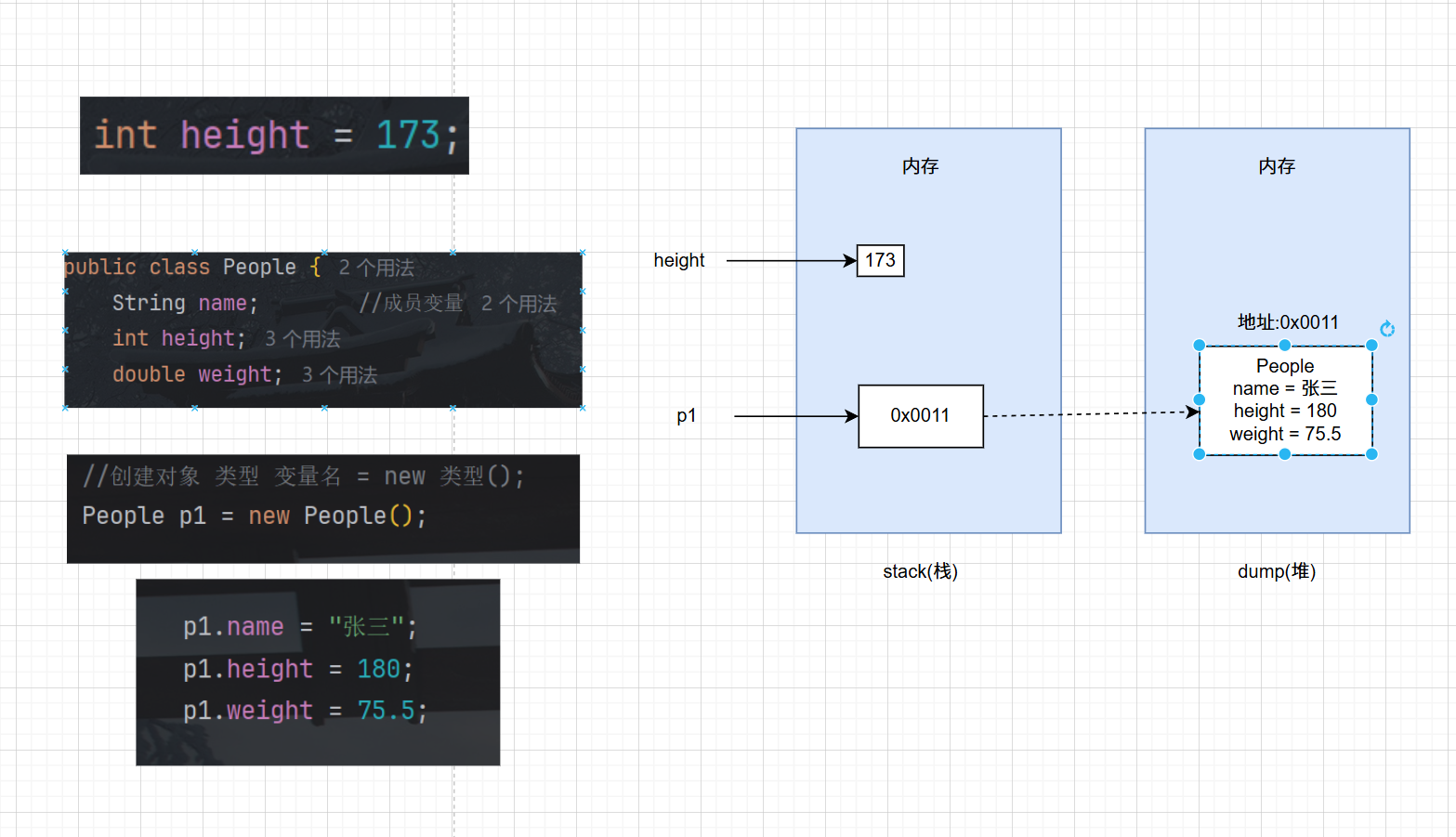 创建对象语法:类型 变量名 = new 类型();