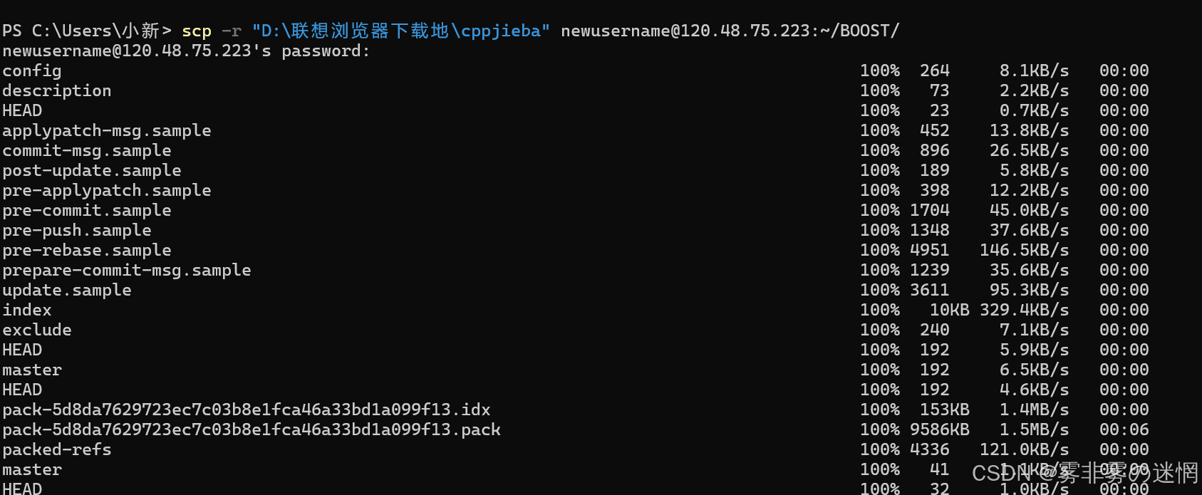 如果需要使用到cppjieba分词工具,可以在gitcode上面直接搜索使用Git命令上传,我这里是本地上传到服务器: