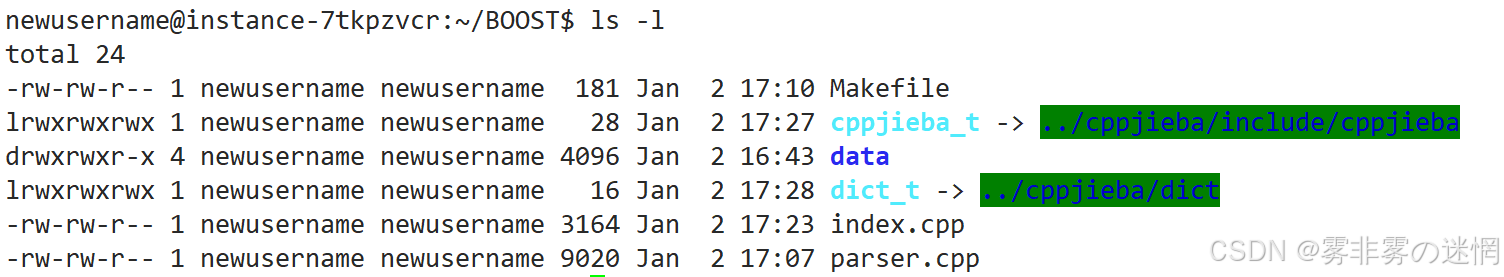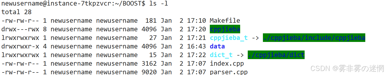 然后对 cppjieba/include/cppjieba和cppjieba/dict分别建立软链接:头文件和词库