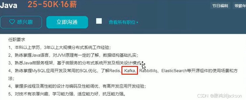 除此之外,我们在找工作的时候,很多公司也要求掌握kafka