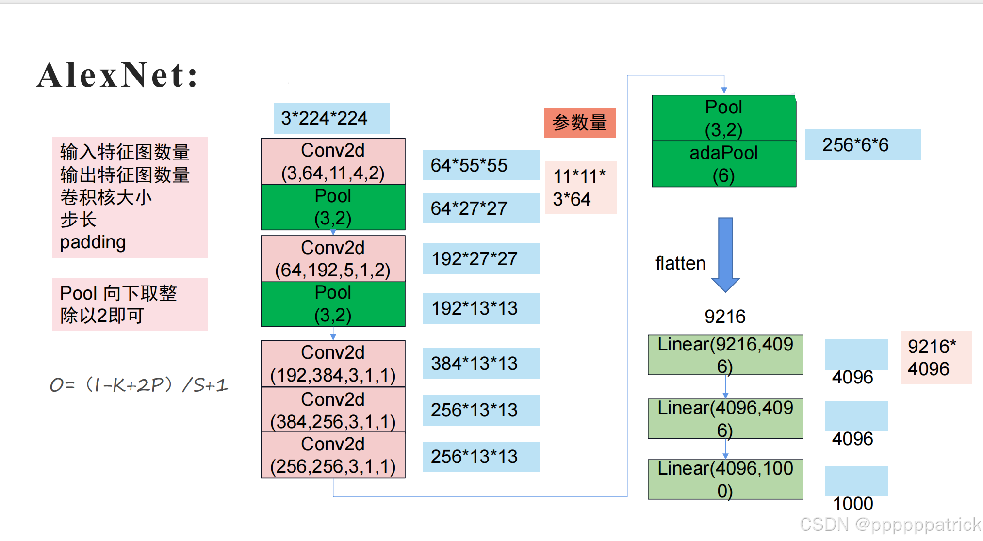 → 输出: 64 × 224 × 224 64 \times 224 \times 224 64×224×224 - 池化: K = 2 , S = 2 K=2, S=2 K=2,S=2,输出尺寸 O = 224 2 = 112 O = \frac{224}{2} = 112 O=2224=112