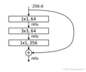 y = Conv(1×1) -> ReLU -> Conv(3×3) -> ReLU -> Conv(1×1) ⏟ F ( x ) + x y = \underbrace{\text{Conv(1×1) -> ReLU -> Conv(3×3) -> ReLU -> Conv(1×1)}}_{F(x)} + x y=F(x) Conv(1×1) -> ReLU -> Conv(3×3) -> ReLU -> Conv(1×1)+x
