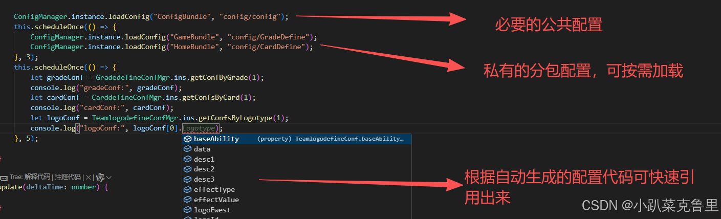 在 Cocos Creator 中,我们通过一个 ConfigManager 来加载这些二进制文件。例如: