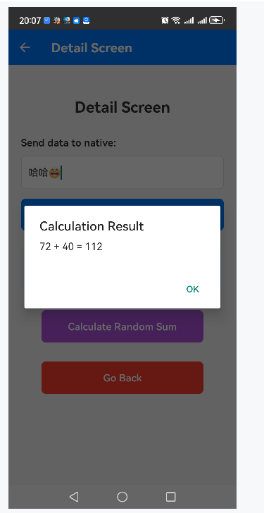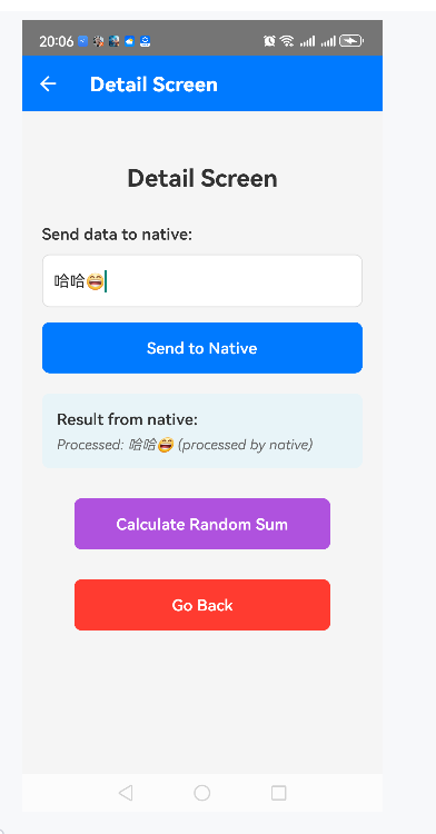 输入文字,点击Send to Native: