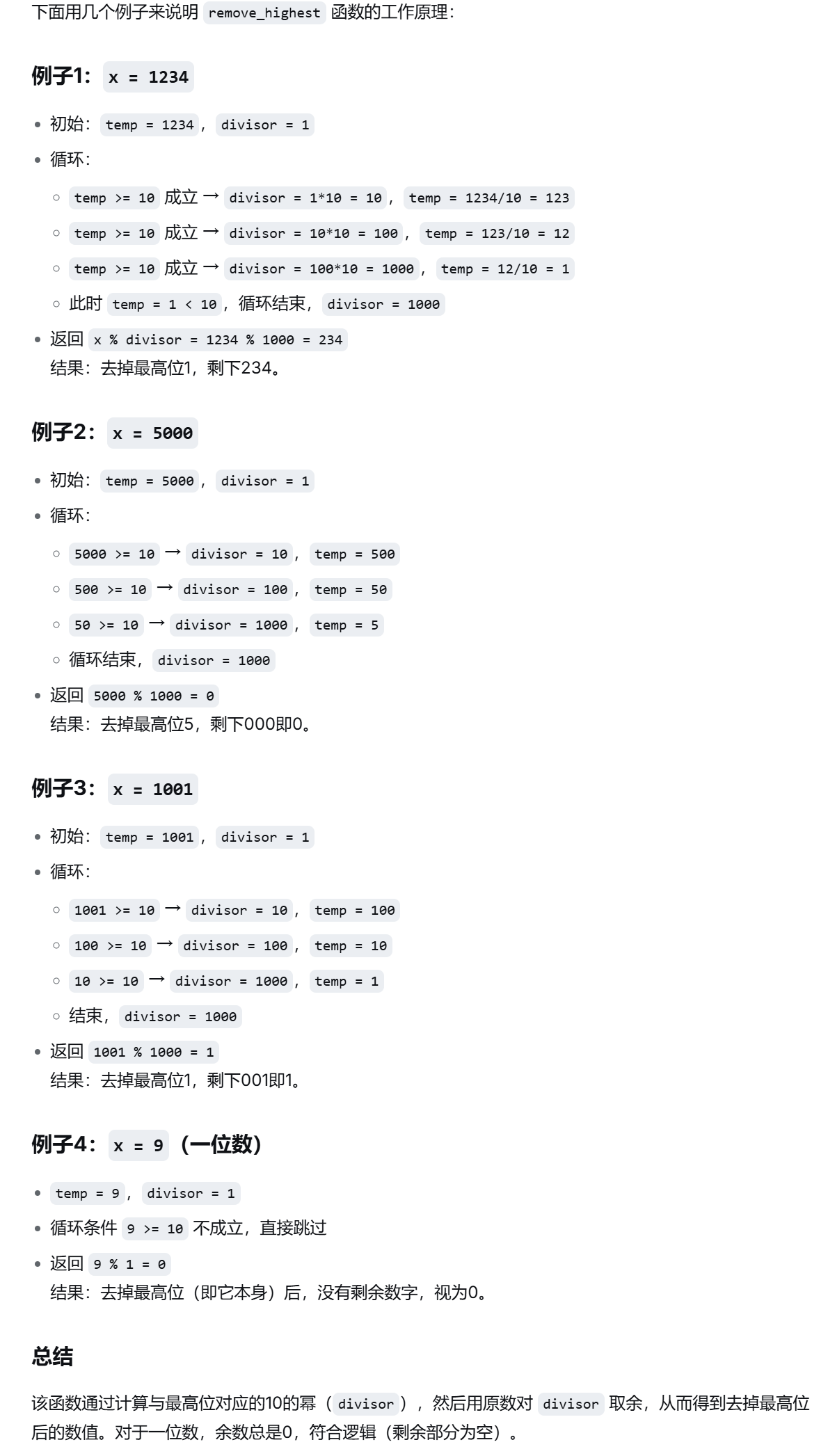 int rest=remove_highest(x);//去掉最高位