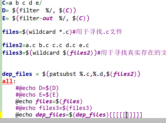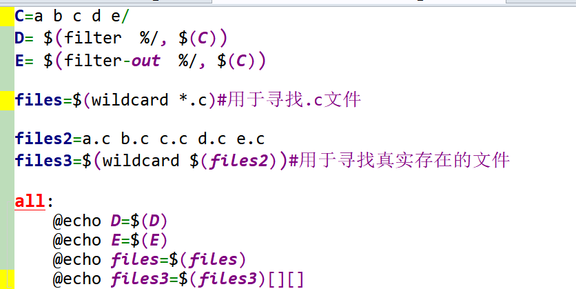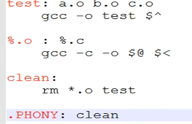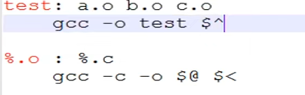 $<: 代表当前规则中的第一个依赖文件名 (例如a.c)。