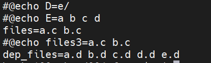 命令 :一系列 shell 命令,描述如何从依赖文件生成目标。必须用 Tab 键缩进。