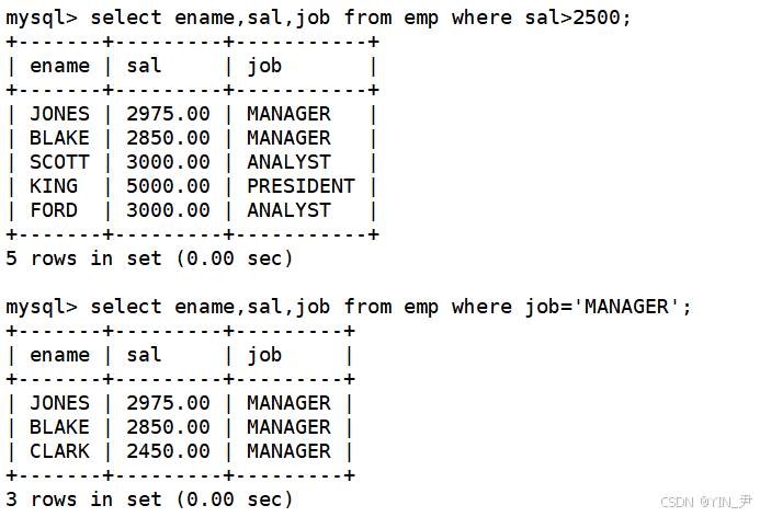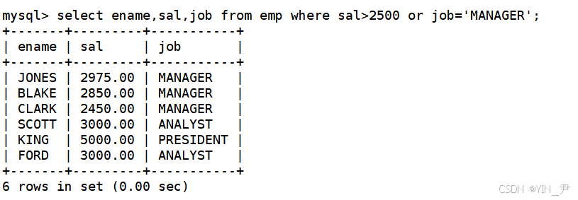 那上面select ename,sal,job from emp where sal>2500 or job='MANAGER';这条语句其实就是