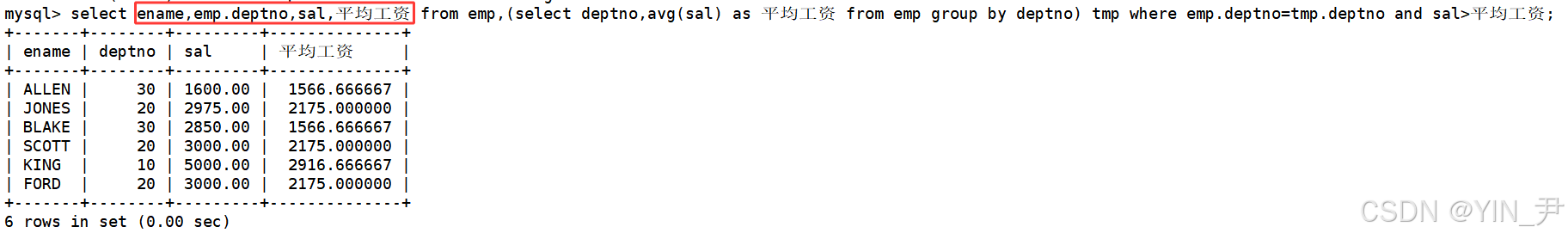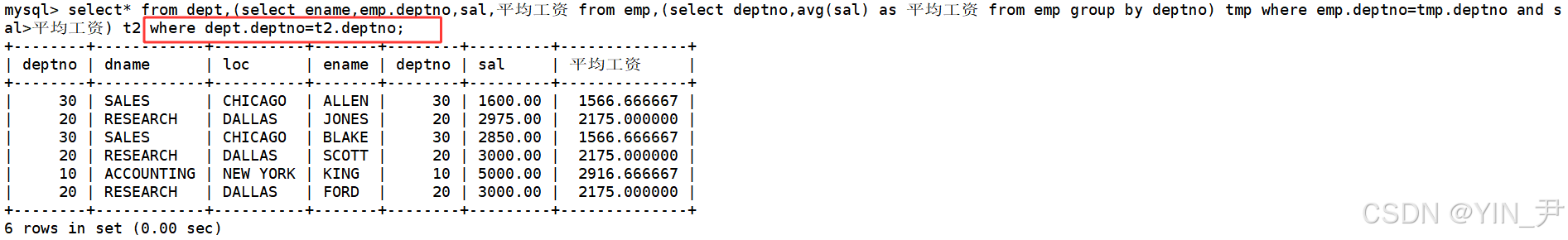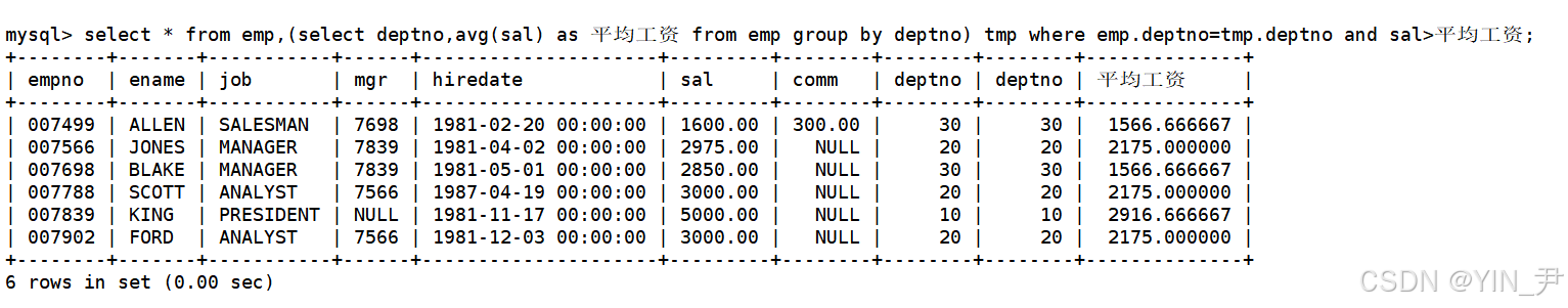 select * from emp,(select deptno,avg(sal) as 平均工资 from emp group by deptno) tmp where emp.deptno=tmp.deptno and sal>平均工资;