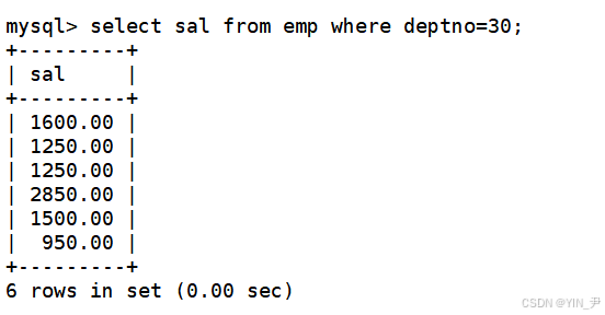 select sal from emp where deptno=30返回了多行数据(多行子查询)