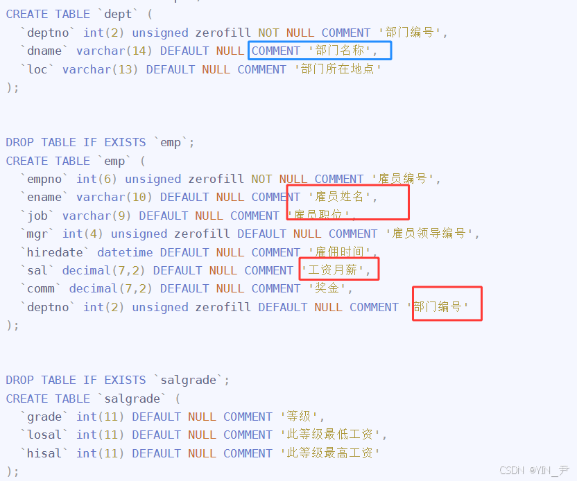 上面的信息是在emp表中的(当然也在上面的结果表中),而部门名称是在dept表中的。所以就要进行多表查询,那这是我们上篇文章学的内容