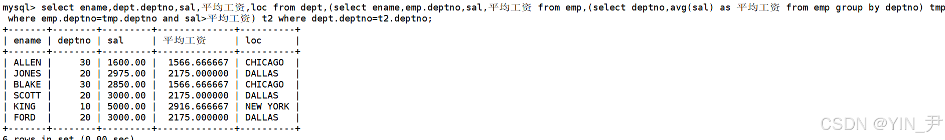 select* from dept,(select ename,emp.deptno,sal,平均工资 from emp,(select deptno,avg(sal) as 平均工资 from emp group by deptno) tmp where emp.deptno=tmp.deptno and sal>平均工资) t2 where dept.deptno=t2.deptno;