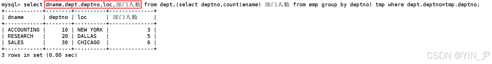 然后其余的信息部门名称,编号和地址不就都在dept表中嘛